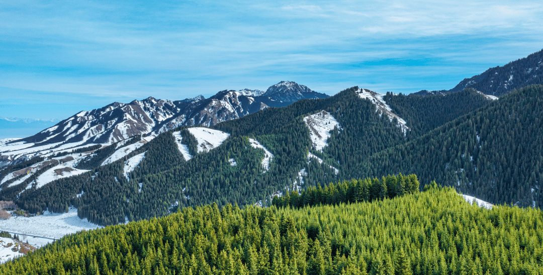 而在巍巍天山深处,绵延不绝的雪岭云杉,随天山山脉一直沿东西走向延伸2000多公里,堪称地球表面最壮阔的森林景观带之一。