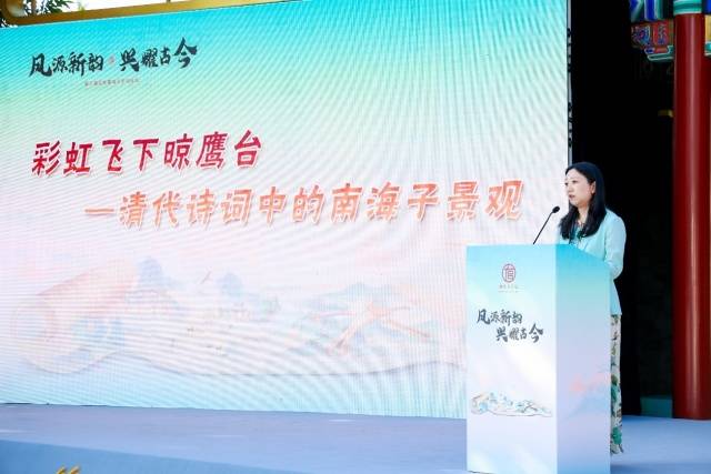 中国人民大学国学院辛晓娟教授作题为《彩虹飞下晾鹰台——清代诗词中的南海子景观》的主旨演讲。她以清代诗人吟咏南海子的诗篇为切入点,通过解读诗中描绘的南海子地貌景观和乾隆狩猎盛景,梳理出南海子作为皇家猎苑的历史脉络,进一步凸显出其独特的苑囿文化,并提炼出“取之有度,用之有节”的发展智慧。辛晓娟认为,南海子这片曾经“燕京十景”之一的皇家苑囿,正以文化记忆的方式重构着现代北京的城市形象。