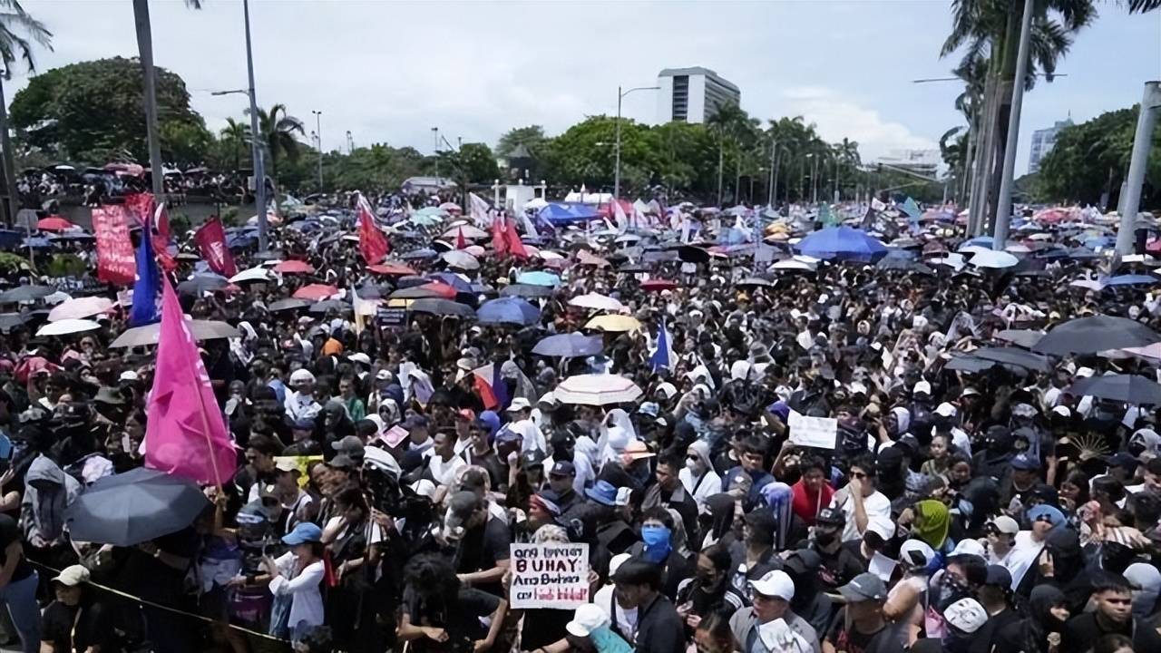 与此同时,菲律宾国内的反腐抗议爆发,恰逢其时。9月21日,马尼拉及其他城市的街头爆发大规模,成千上万的人走上街头抗议政府腐败,尤其是政府在防洪项目中的不当行为。该项目本计划用于防洪,但审计发现,项目资金大量被贪污,承包商与官员勾结,幽灵工程层出不穷。者的抗议主要集中在黎萨尔公园,举着反腐败的标语,警察与抗议者发生了冲突,200多人被逮捕。马科斯早在7月就承认,防洪项目确实存在问题,但民众并不买账,认为腐败问题根深蒂固。