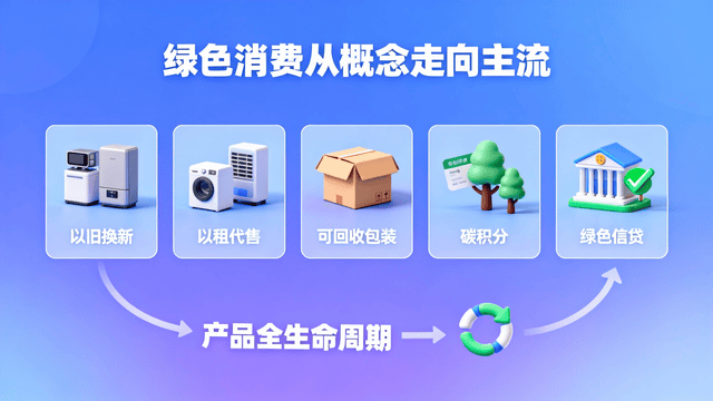 绿色消费从概念走向主流,以旧换新、以租代售、可回收包装、碳积分与绿色信贷等模式,构建“产品全生命周期”的绿色价值链。消费者对环保、可持续产品的认同度不断提升,愿意为符合ESG标准的品牌支付溢价。