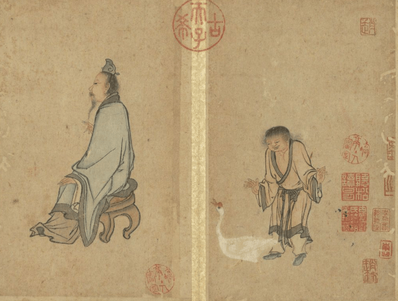 吴江史鉴(1434—1496年),于书无所不读,尤熟于史。“为文章纪事有法,醇雅如汉人语,诗则不屑为近体”,“家居甚胜,水竹幽茂,亭馆相通,如入顾辟疆之园。客至,陈三代秦汉器物及唐宋以来书画名品,相与鉴赏”。[35]家藏历代稀世珍迹,如唐褚河南书《文皇哀册文》,欧阳询《梦奠帖行书》,颜鲁公《刘中使帖》四十一字,僧巨然山水大幅,韩熙载《夜宴图》,李龙眠《九歌图》一卷;赵子昂《人马图》《秋江烟霭图》,黄大痴《溪山图》,吴仲圭《拟范宽雪峰萧寺图》长幅,薛尚功摹钟鼎款识线年)状元,官至礼部尚书,谥文定。言词雅淳,文翰清妙,成化、弘治间以文章德行负天下重望者三十年。[37]“平生最好苏学,字法亦酷肖东坡,缣素流传,收藏家珍如拱璧。”[38]怀素《自序帖》,天下奇迹,吴宽曾收藏。[39]北宋书家李建中所作帖,存世殊少,王鏊赞为“清丽圆熟,状态横生,可谓深得二王笔法者”,吴宽也有收藏。[40]宋人魏了鹤手书,世所罕见,吴宽从魏的通家之好吴江虞氏处获得。[41]世上出现的南宋理宗赐郑丞相书,吴宽鉴定为线]按都穆的说法,吴宽还藏有唐林藻《深慰帖》,宋秘府物;五代《胡瑰番族图》,南唐周文矩《诗意图》,宋许道宁《溪山风雨图》;宋人画《聚禽图》,后有宋绍兴小印;宋人画《德星图》,后有朱子门人胡泳跋,宋末藏周公谨家;钱舜举《秋岩行旅图》;元赵子俊《萧翼赠兰亭图》。按其《家藏集》所载,他还藏有南唐王齐翰的《勘书图》。