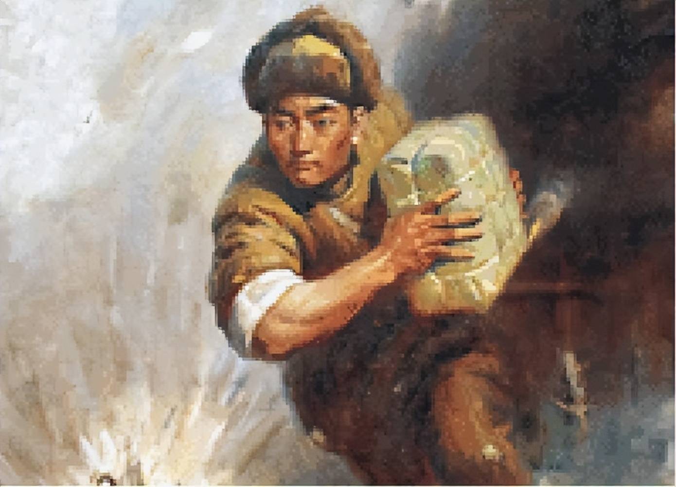杨根思回头看了看战友,他没有下撤退命令。他把最后两名还能动的伤员赶下山,让他们带走唯一的机枪。随后,他弯腰抱起了那包重达10公斤的炸药。