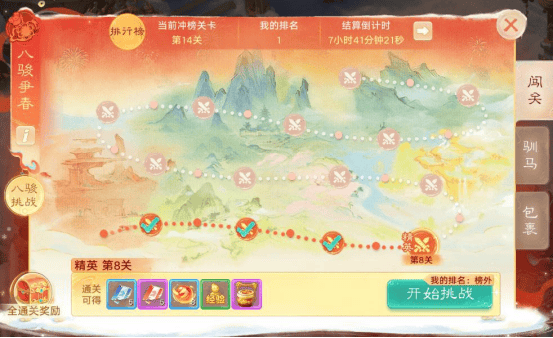 2)每个精英关卡还可以重复挑战参与排行获得奖励哦!全通关卡还可以抽取全新春节召唤兽照夜哦!