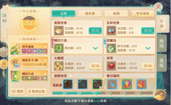 3)新春佳节期间(2月12日维护后至2月19日5:00),少侠每日晚22:00至次日5:00,还可组队参与走马行商自动挂机玩法,获取高额召唤兽及内丹经验;